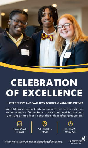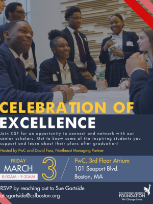 Join CSF for a special event bringing together our GO and Inspiration Scholars with the donors who help make their education possible.This is a unique opportunity for scholars to connect, share their gratitude, and build relationships with individual donors.