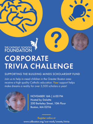Join us for an unforgettable evening at the 36th Annual Building Minds Scholarship Fund Gala on April 16, 2026, at the Boston Marriott Copley Place (110 Huntington Ave, Boston) will bring together supporters committed to providing students access to a high-quality Catholic education.