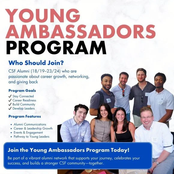 Want to reconnect with CSF since graduation? Want to learn more on how to get involved with CSF? Reach out to Stephen Lavoie at slavoie@csfboston.org to share your story and what you have been up too.