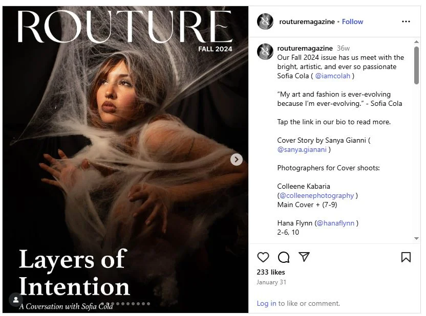 Colleene was the photographer for the cover photo of Routure Fall issues.