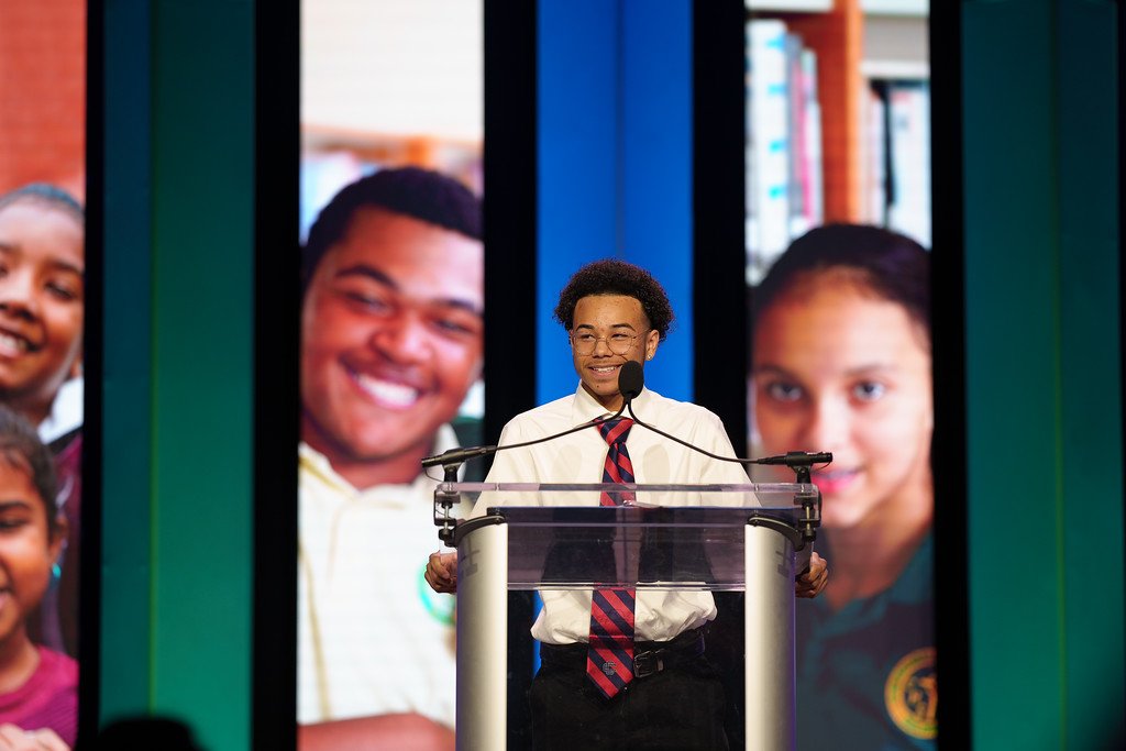 Nelvin concluded his speech by sharing his goal of making a positive impact and a meaningful contribution to others in the world. He thanked the Catholic Schools Foundation for providing opportunities to students like him in Lawrence, a challenging place to grow up. He praised places like Bellesini Academy, Central Catholic, Lawrence Catholic Academy, and Notre Dame Cristo Rey for their commitment to providing quality Catholic education to students.